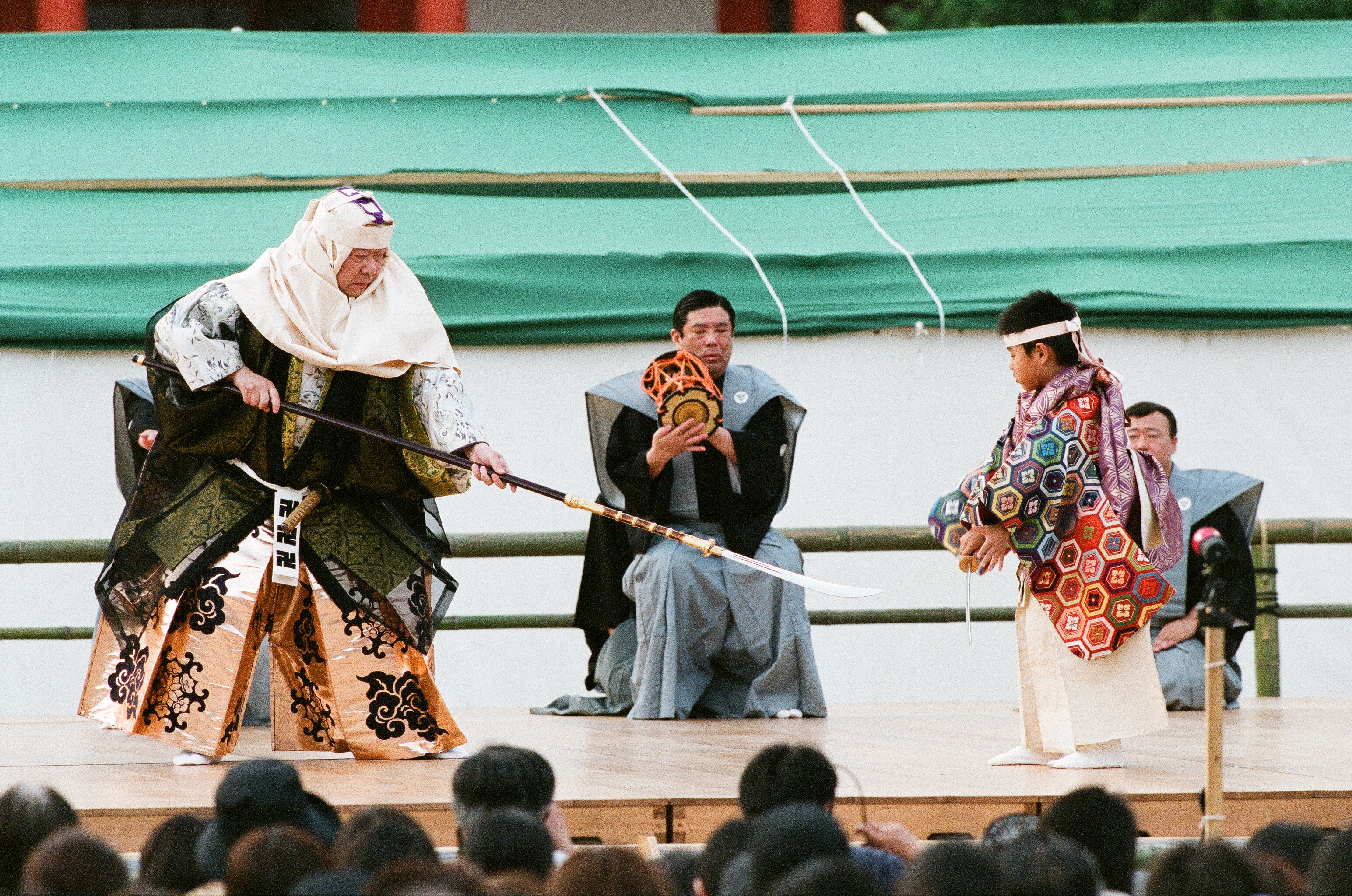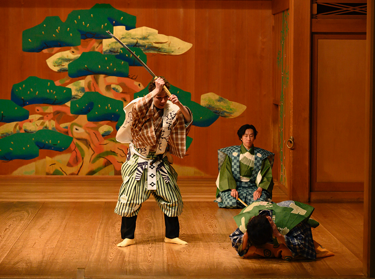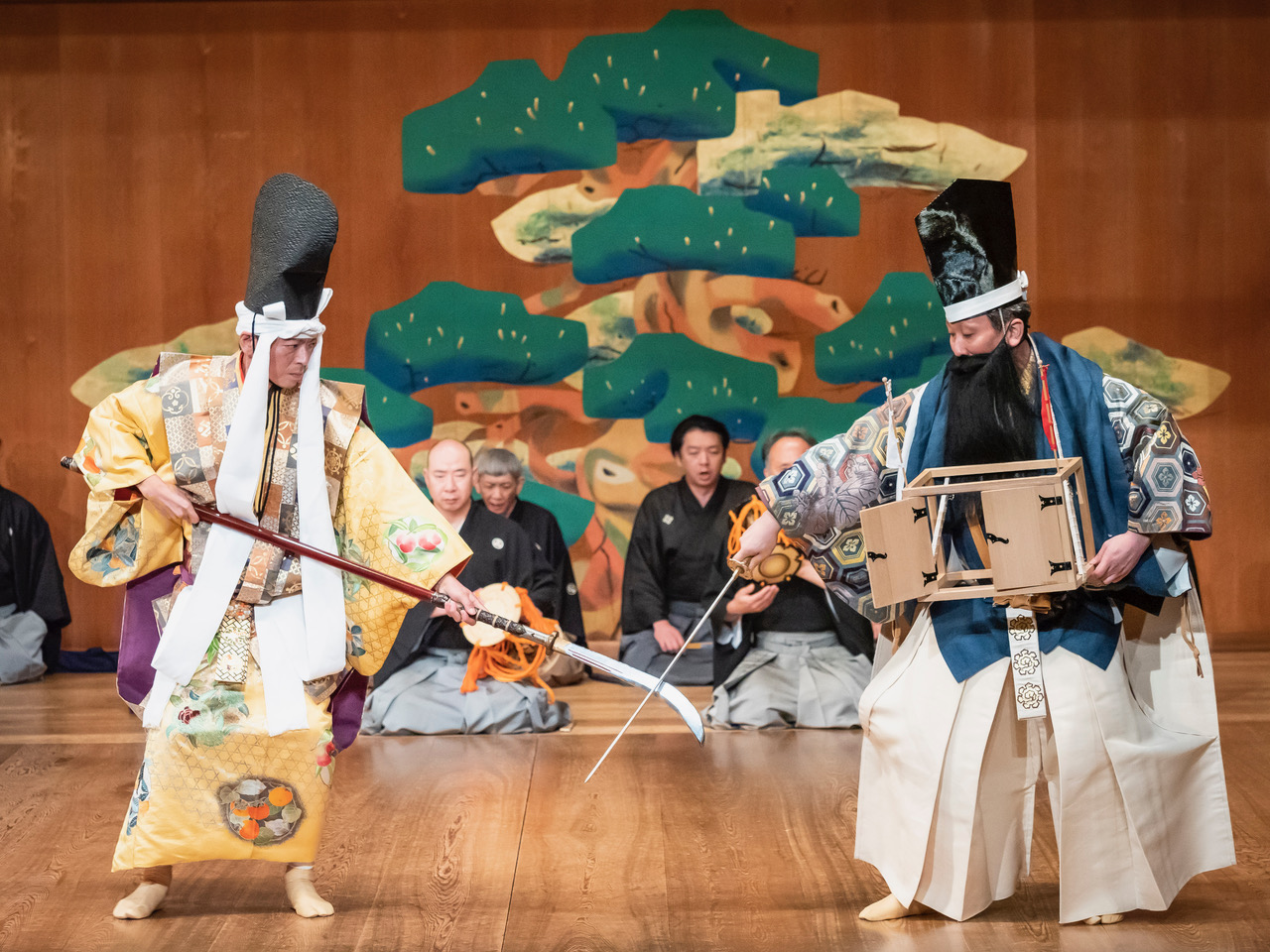 大嘗会での役目を仰せつかった男は、自慢の大髭を誇りに思い準備を進めますが、貧しい暮らしに不満な妻と衝突し、髭を巡って大喧嘩に。妻が近所の女房たちを連れて髭を抜きに来ると知った男は、髭を守ろうと武装して待ち構えます。髭を巡る滑稽な攻防が繰り広げられる狂言です。
